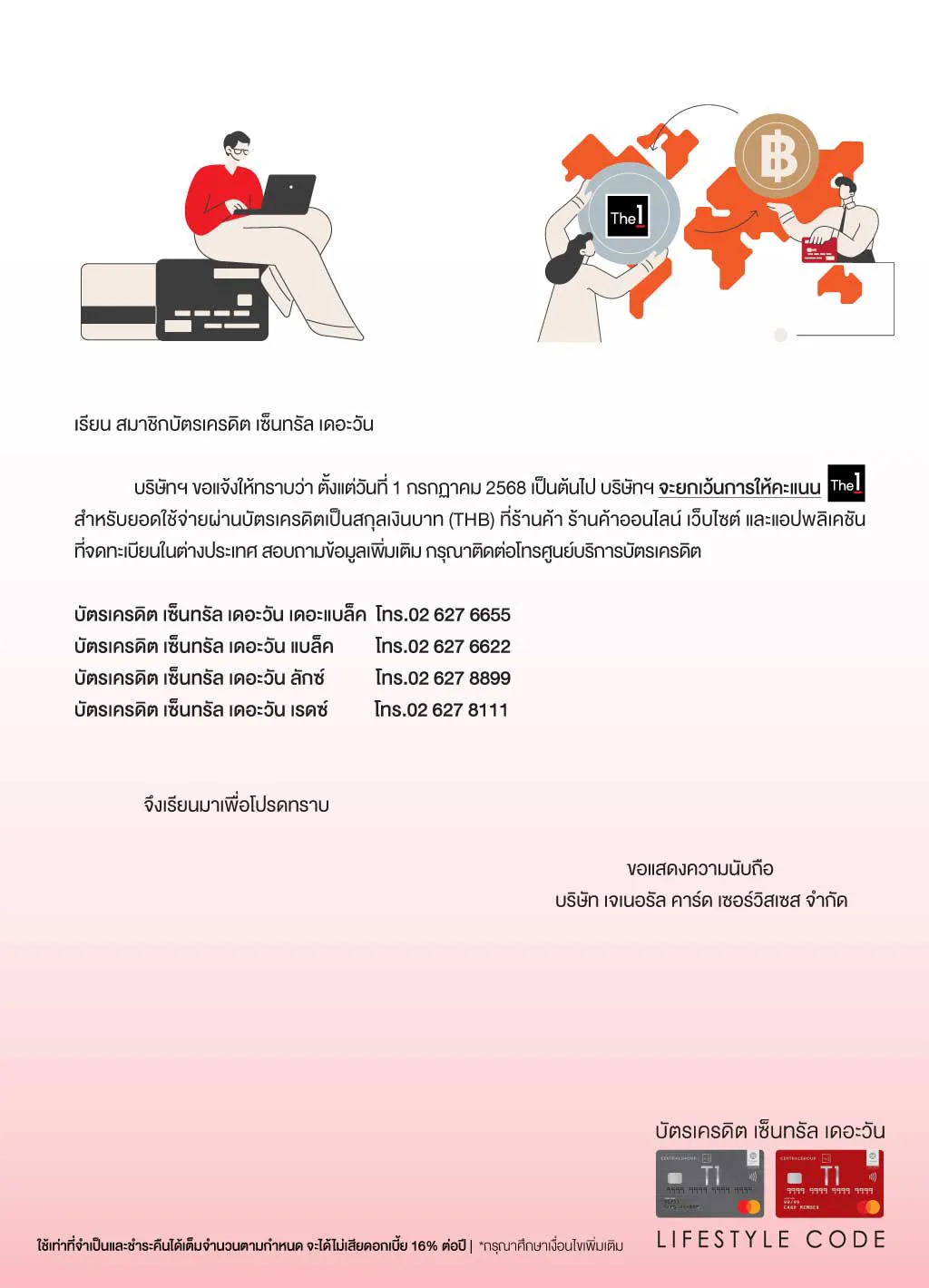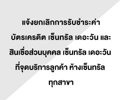 สอบถามรายละเอียดเพิ่มเติมได้ที่ศูนย์บริการสมาชิกสินเชื่อส่วนบุคคล เซ็นทรัล เดอะวัน โทร.02-627-4999