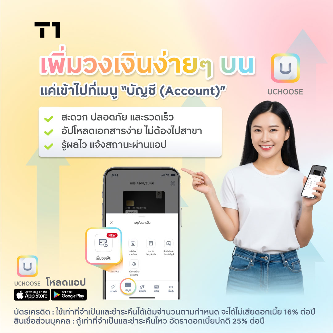 สามารถกดเพิ่มวงเงินชั่วคราวได้ทันที แค่มี UCHOOSE